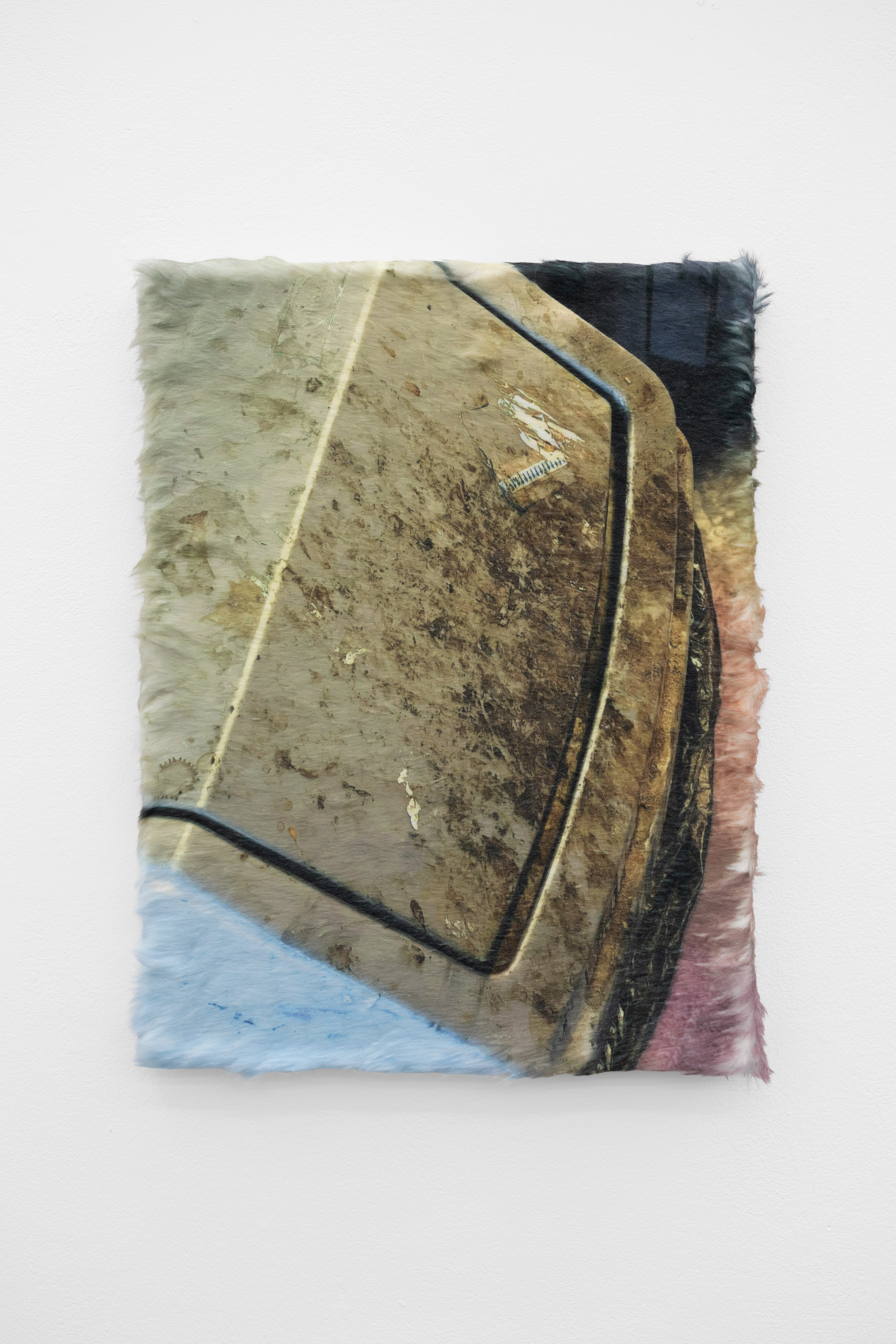 Keith Farquhar, Untitled (bin lid), 2026, Dye Sublimation on polyester fur, 41 x 31 x 2 cm