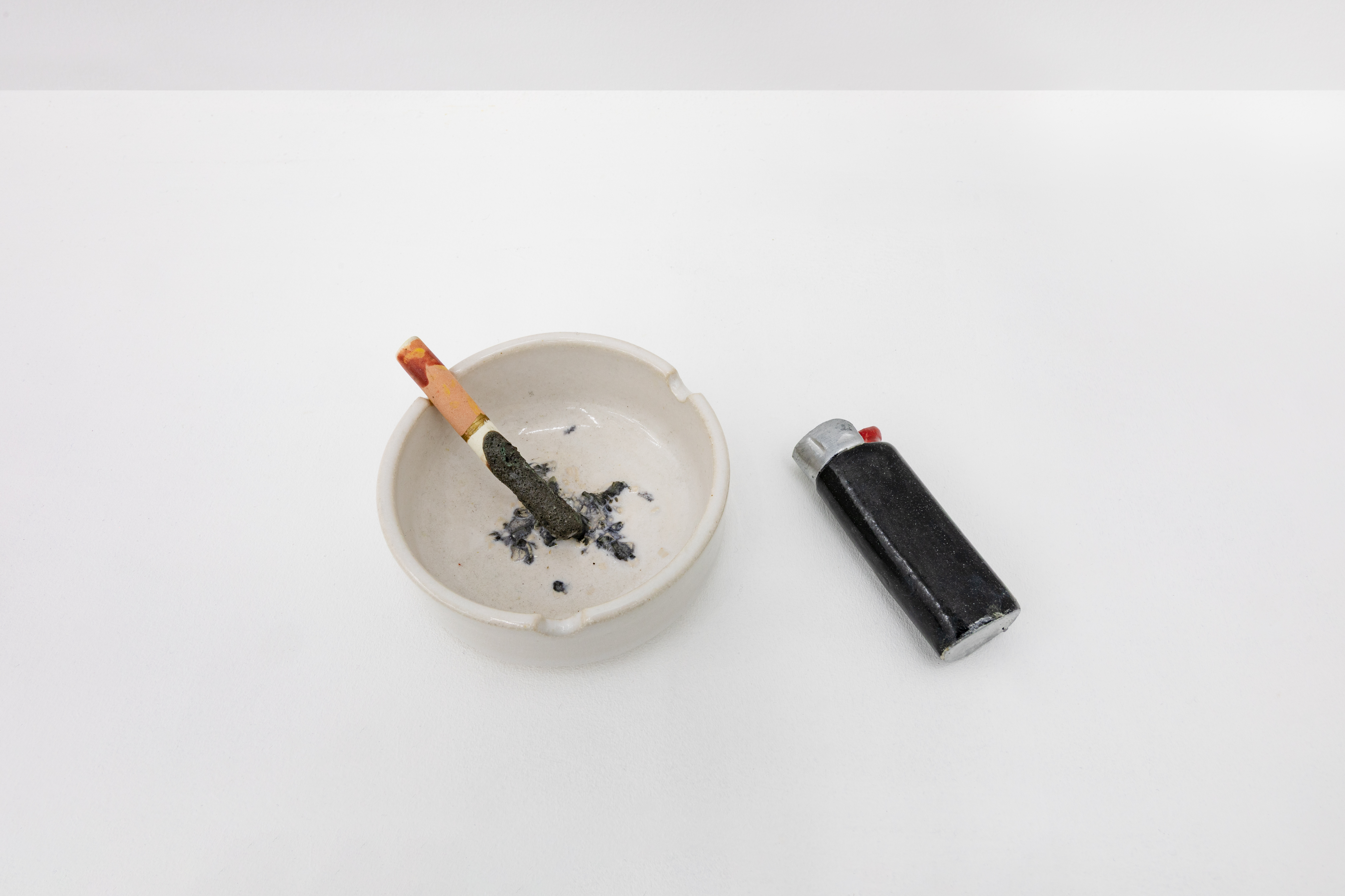 Erica Eyres, Ashtray and Lighter, 2024, Glazed stoneware, Dimensions variable