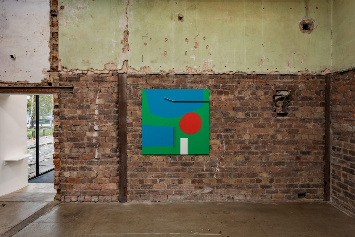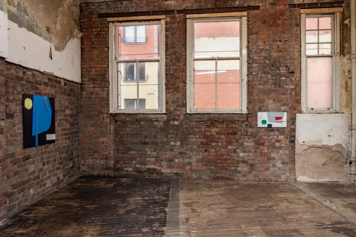 The works were made specifically for the Bricks Space and are intended to function within its unique disrepair. The gallery operates as a kind of cloistered zone and geometry and colour are Paterson’s lexicon, functioning as a cypher for his subjectivity. Each work arises from a generative process of drawing and painting. The consistent use of graphic form allows for a sensitivity to build up – an awareness of the effects of colour and proximity of line. The works are an attempt to make memory material, to transpose an emotion or a reckoning with place into paint. Often this reckoning involves the artist considering a relationship to a site that he has visited multiple times over the years. Ones that have become points of return, places of acute feeling. Emotions brought to a particular site enmesh with its spatial and visual qualities. The works are not narrative in this sense but seek to produce an analogue of Paterson’s experiences, while remaining open to interpretation.