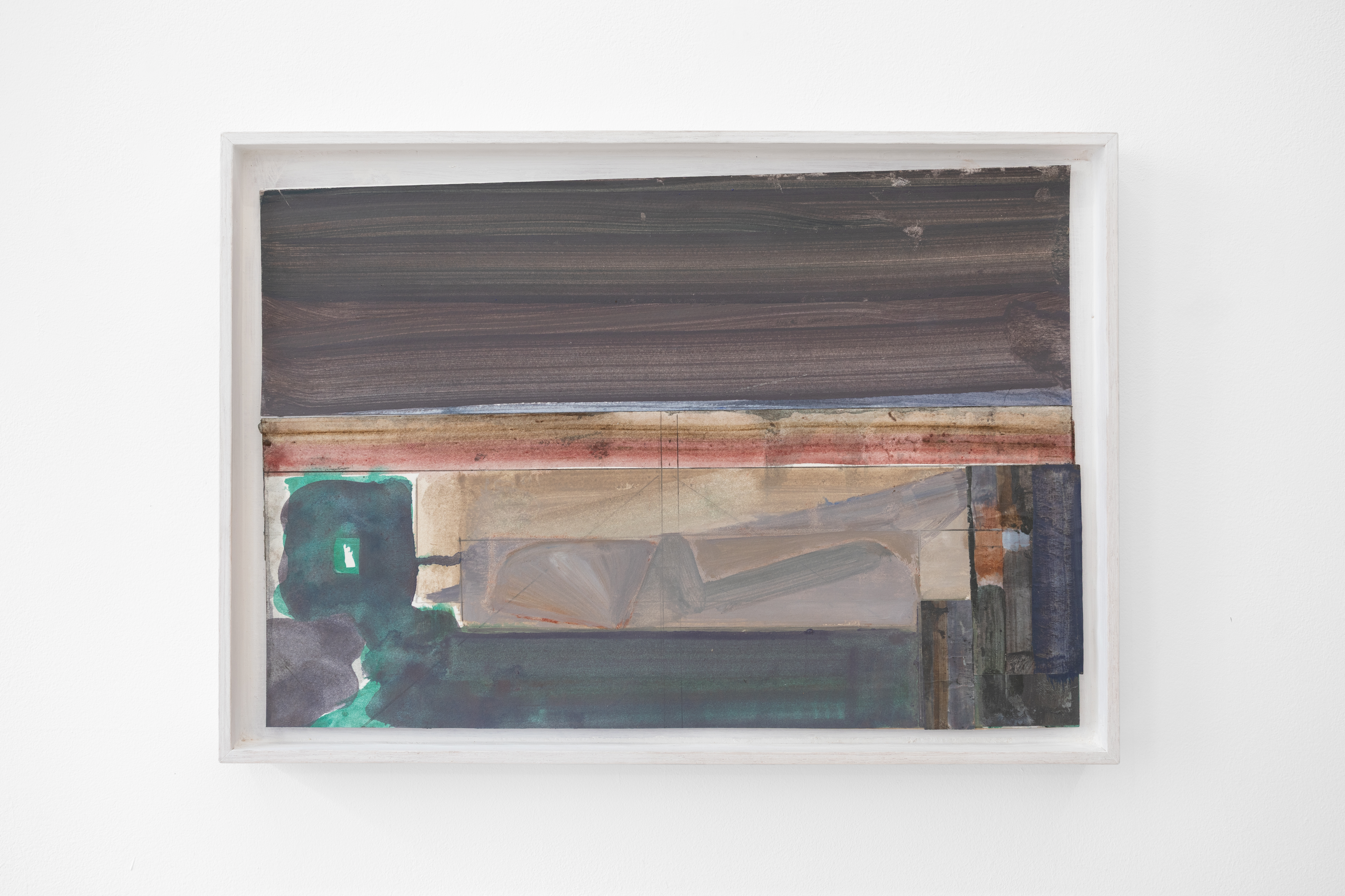 Rhett Leinster, Bunker, 2024, Pigmented casein, crayon, chalk and collaged elements on paper, 48 x 32.3 cm